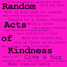 Random acts of kindness is when you just feel like doing a good deed, for no reason.